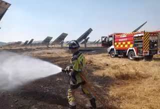 Efectivos del Consorcio de Extinción de Incendios y Salvamento (CEIS) de la Región de Murcia han sofocado un incendio declarado en un parque de placas solares situado en la carretera RM-711, en el término municipal de Caravaca de la Cruz.