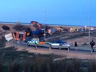 El siniestro se ha registrado sobre las 16.43 horas, en el kilómetro 0,200 de una vía de acceso a la autopista AP-7, a la altura de San Pedro del Pinatar cuando, por causas que se desconocen, un camión se ha salido de la vía.