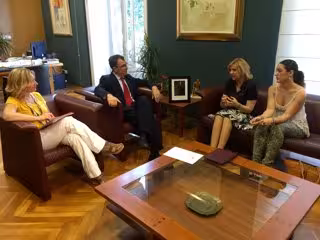 La consejera de Familia e Igualdad de Oportunidades, Violante Tomás, se ha reunido este lunes con el alcalde de Murcia, José Ballesta, para "analizar los recursos disponibles para la atención a mujeres víctimas de violencia de género y coordinar actuaciones prioritarias de prevención al respecto, así como de promoción de la igualdad de oportunidades entre hombres y mujeres".