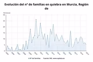 Las familias y empresas que se declararon en concurso de acreedores (suspensión de pagos y quiebras) ante la imposibilidad de afrontar sus pagos y deudas sumaron un total de 36 en la Región de Murcia en el primer trimestre del año, lo que supone un aumento del 9,1 por ciento respecto al mismo periodo de 2018, según la Estadística de Procedimiento Concursal del Instituto Nacional de Estadística (INE) publicada este jueves.