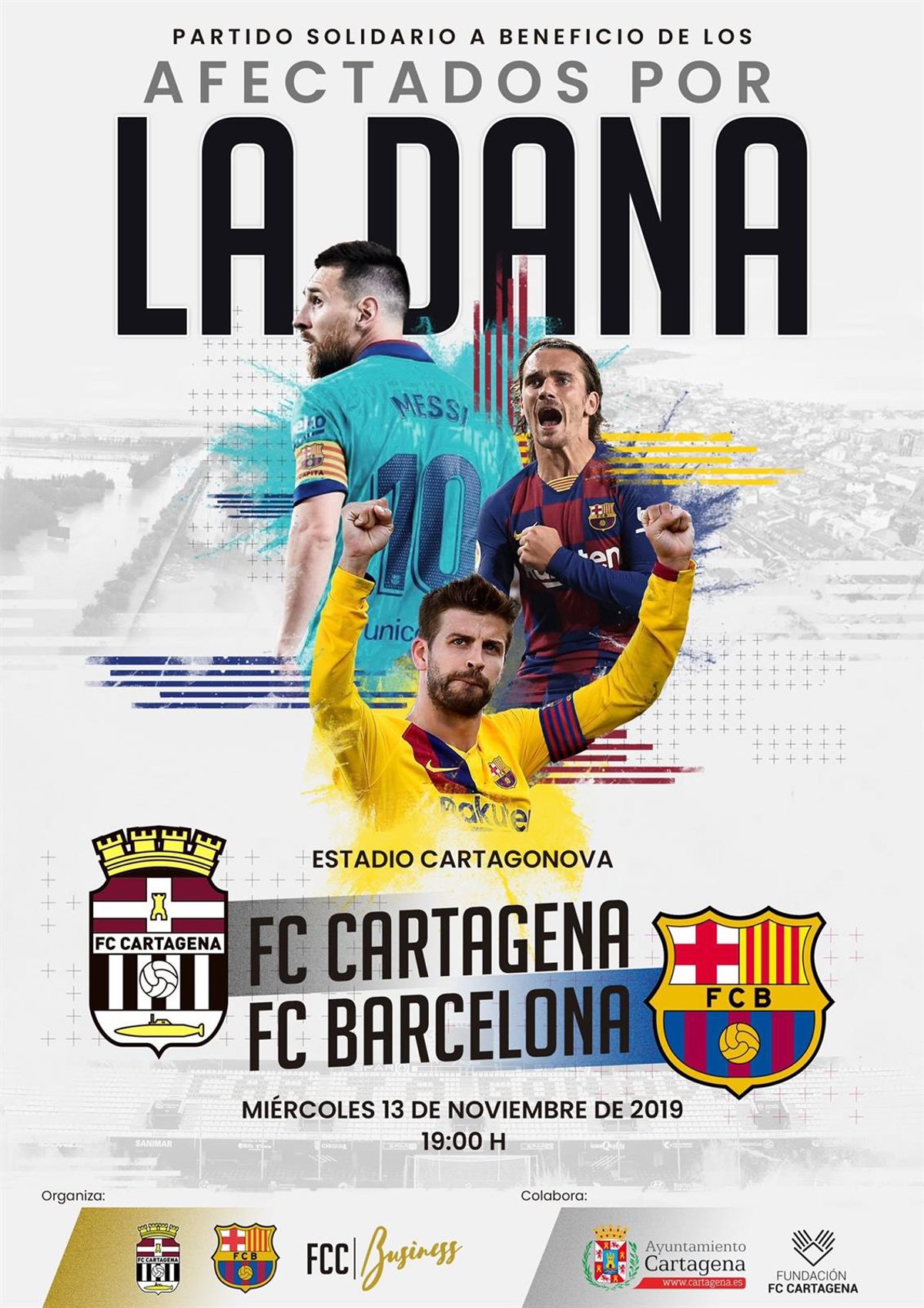 El Estadio Municipal Cartagonova acogerá el próximo 13 de noviembre, a las 19.00 horas, un partido amistoso entre el FC Cartagena y el FC Barcelona, cuyos beneficios se destinarán a ayudar a las familias cartageneras que se han visto afectadas por el temporal de gota fría del pasado mes de septiembre.
