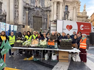 Así, Fecoam y Proexport se han sumado a este acto con un reparto gratuito a la población de frutas y verduras de temporada, como brócoli, apio, pomelo o cítricos, en la Plaza Belluga de la capital murciana.