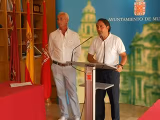 El concejal de Cultura, Rafael Gómez, y el director de la Feria de Ganado, Santiago Lidón, han presentado este viernes este evento que es el origen de la Feria de Murcia, instaurada por Alfonso X El Sabio en el siglo XIII. Su larga tradición se interrumpió durante los años cincuenta para renacer, con más fuerza, hace ya 18 años.