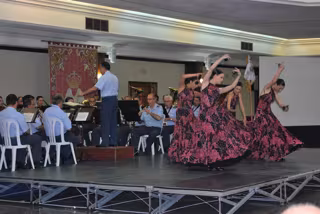 Esa mezcla de contrastes se repitió este viernes, donde se pudo escuchar el 'Fandango de Doña Francisquita' o 'Las bodas de Luis Alonso' interpretadas por la orquesta del aire dirigida por el comandante director Armando Bernabeu, y ver en el mismo escenario y al mismo tiempo el taconeo y la fuerza de las bailaoras flamencas del Ballet de Lo Ferro Josefina Nicolás, Begoña Alarcón, Carmen Contreras y Antonia García.