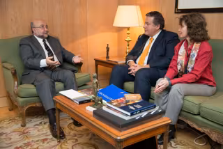 Así lo han acordado en la reunión que han mantenido en Madrid el alcalde y presidente de la Comisión Ejecutiva de la Fundación Cante de las Minas, Francisco Bernabé; el director de la Oficina del Alto Comisionado del Gobierno para la Marca España, José Ángel López; y la directora general de Casa Mediterráneo, Almudena Muñoz, organismos ambos dependientes del Ministerio de Asuntos Exteriores.