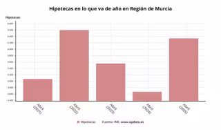El número de hipotecas constituidas sobre viviendas en Murcia ha subido un 33,7% en abril respecto al mismo mes del año anterior (frente a una subida del 14,39% a nivel nacional), hasta sumar un total de 1.146 operaciones, aunque se ralentiza, con 0 puntos menos que la tasa interanual registrada el mes anterior, según datos publicados este viernes por el Instituto Nacional de Estadística (INE).