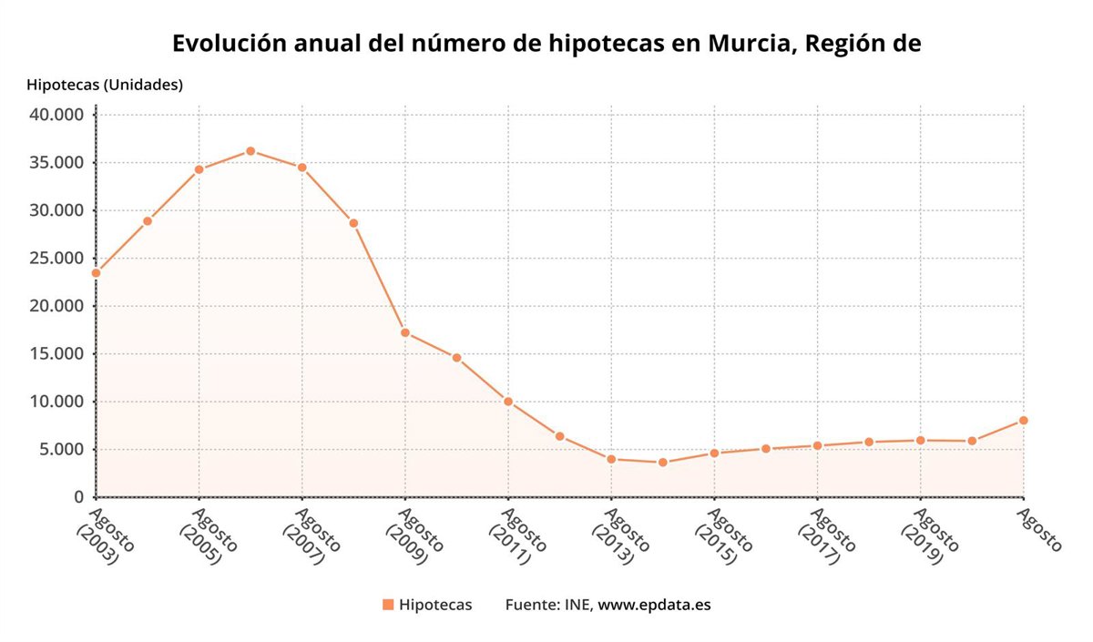 Evolución del número de hipotecas en la Región de Murcia - EP DATA
