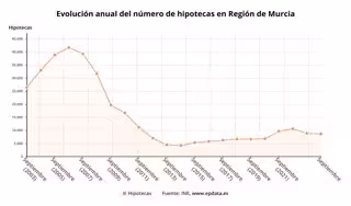Evolución anual del número de hipotecas en la Región de Murcia - EPDATA