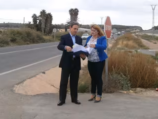 El director general de Carreteras, José Antonio Fernández, y la alcaldesa de Mazarrón, Alicia Jiménez, han visitado este lunes la carretera RM-332, donde la Consejería de Fomento e Infraestructuras proyectará la construcción de una rotonda que dé acceso al complejo polideportivo de la localidad de Mazarrón.