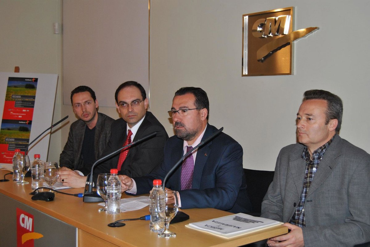 El director general de Patrimonio Natural y Biodiversidad, Pablo Fernández; el director del Conservatorio de Música, Jonatan Rives y el subdirector Luis Giménez, junto al gerente de la Fundación Cajamurcia, Pascual Martínez, ofrecieron hoy una rueda de prensa para explicar el ciclo, organizado con motivo del Año Internacional de la Diversidad Biológica.