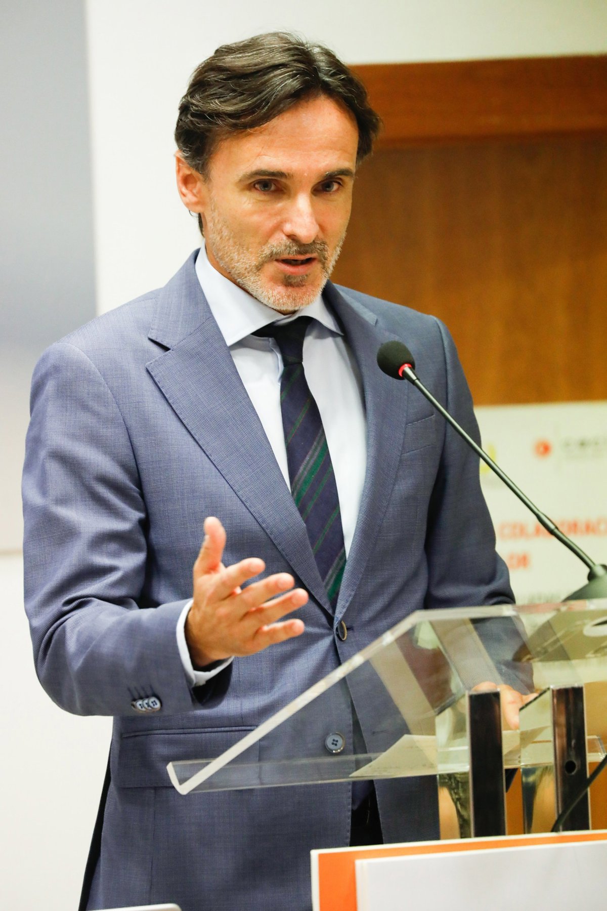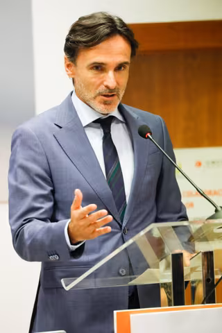 El consejero de Fomento e Infraestructuras, Jorge García Montoro, interviene durante el encuentro informativo ‘Quiero Corredor’, organizado por Europa Press, en el auditorio de CECLOR, a 10 de septiembre de 2025, en Lorca, Murcia (España). - Edu Botella - Europa Press