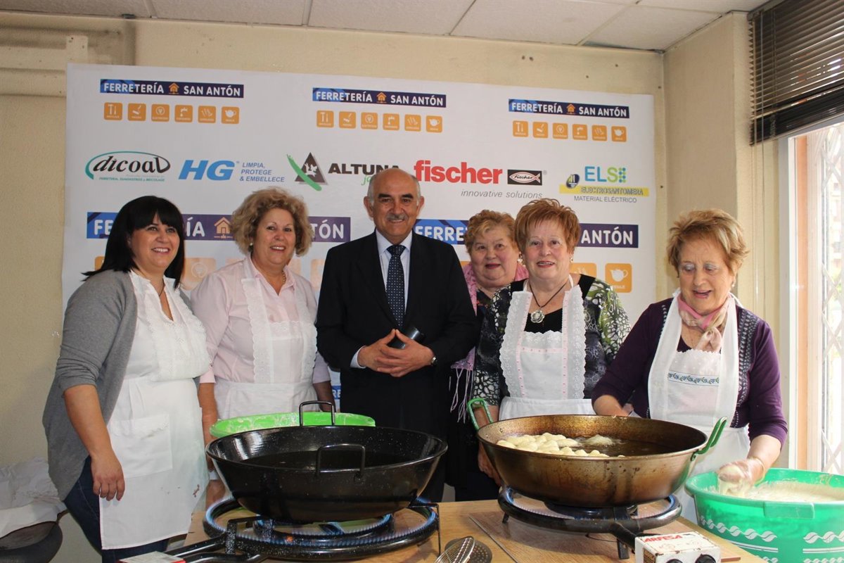 La ferretería San Antón ha invitado al presidente de la Comunidad, Alberto Garre, y a los vecinos del barrio a un chocolate con buñuelos, al que también han asistido el alcalde de Murcia, Miguel Ángel Cámara, y la Reina de la Huerta con sus damas de honor.