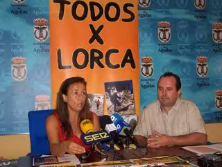 La edil de Festejos del Ayuntamiento de Águilas, Clara Valverde, y el gerente de Espectáculos Lorca, Pedro Lucas, han presentado este jueves la gira nacional 'Todos x Lorca', un proyecto solidario con Lorca que hace poco más de un año sufrió las consecuencias de dos devastadores terremotos.
