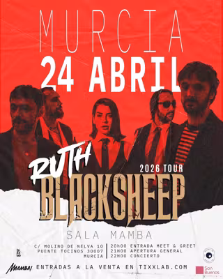 La gira de rock Blacksheep de Ruth llega a Murcia en el próximo 24 de abril, en la sala Mamba, tras pasar por varias ciudades. Se trata de una gira de salas cuya parada en Zaragoza será en la Sala Mamba, el 20 de marzo.