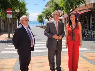 González Tovar y la alcaldesa de Los Alcázares visitaron las obras de pavimentación de diversas calles de la urbanización Oasis del casco urbano de este municipio, que consistieron en la sustitución del pavimento de aceras y calzadas, así como la mejora de la canalización de la red de riego y en jardinería, además de la red de alumbrado, entre otros, que contaron con una inversión de 980.000 euros y que crearon 21 puestos de trabajo.