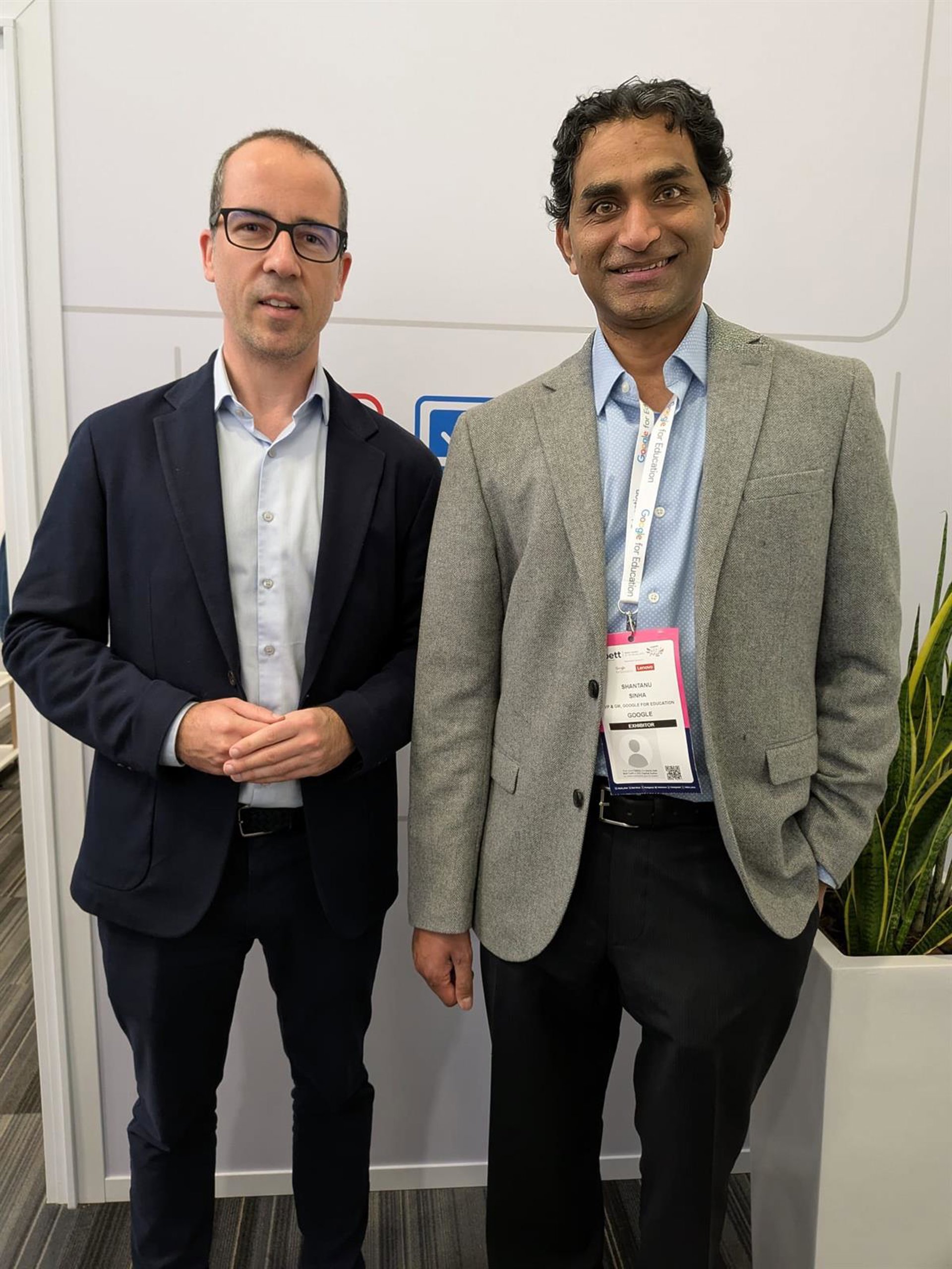 Uno de los encuentros de trabajo que mantuvo el director general de Transformación Digital fue con el vicepresidente y director mundial de Educación de Google, Shantanu Sinha, a quien Martínez le expuso las líneas esenciales del proceso de transformación digital y le presentó el proyecto de la Agencia de Transformación Digital de la Región de Murcia.