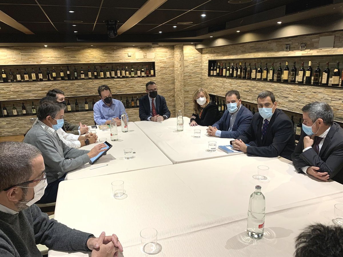 El consejero de Fomento e Infraestructuras, José Ramón Díez de Revenga, acompañado por el secretario general de la Consejería, Enrique Ujaldón, ha mantenido este lunes un encuentro con este colectivo en el que ha destacado que la intención del Gobierno murciano es "establecer un acuerdo social a través de una hoja de ruta clara sobre las infraestructuras que necesita la región".
