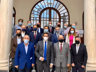 El consejero de Fomento e Infraestructuras, José Ramón Díez de Revenga, con los miembros del Círculo de la Economía de la Región de Murcia tras su reunión sobre el Pacto por las Infraestructuras de la Región de Murcia - COMUNIDAD