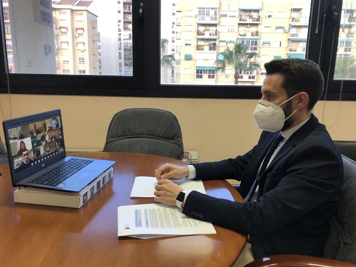 El director general de Vivienda, José Francisco Lajara, durante la reunión telemática en la que ha puesto de manifiesto la necesidad de que el Estado realice las obras necesarias para solucionar "en origen" las inundaciones en el Mar Menor. - GOBIERNO REGIONAL