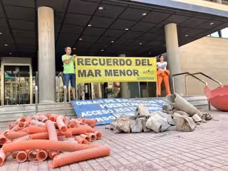 "Estamos aquí para denunciar que el Gobierno de la Región de Murcia y el Ayuntamiento de San Javier siguen empeñados en sacar adelante un puerto deportivo para la zona", explica el portavoz de Greenpeace, Juande Fernández.