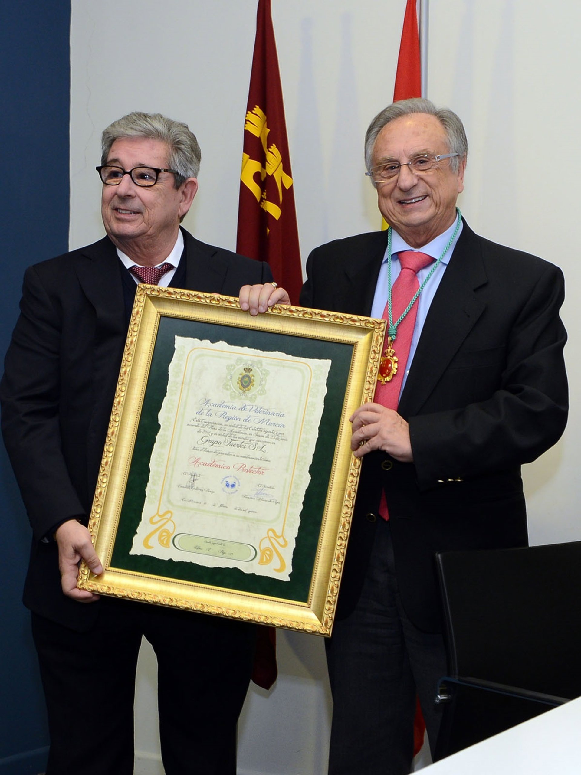 El reconocimiento, formalizado este jueves durante el solemne acto de apertura del curso 2015 de la Academia de Veterinaria, celebrado en el museo Arqueológico de Murcia, fue recogido por el presidente de Grupo Fuertes, Tomás Fuertes.