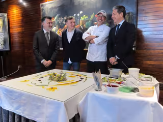 Esta unión se ha simbolizado durante la rueda de prensa con la elaboración por parte del chef de un cuadro comestible utilizando únicamente ingredientes de temporada, sobretodo vegetales característicos de la gastronomía murciana. Sobre una mesa "se ha elaborado un cuadro que representaba un bosque formado con alimentos y salsa de colores, todo de origen alimenticio", ha relatado el chef.