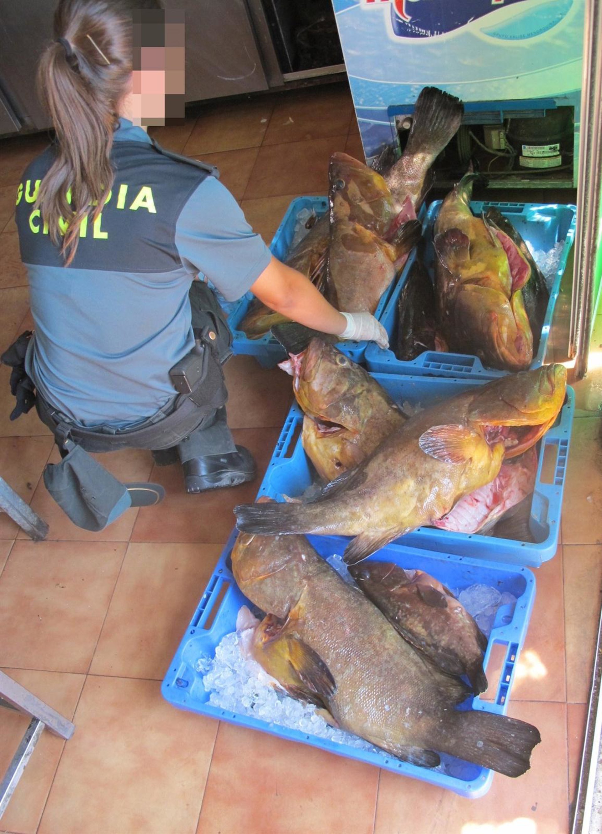 Agentes del Servicio de Protección de la Naturaleza (SEPRONA) de la Guardia Civil de la Región de Murcia, en colaboración con inspectores de los Servicios de Pesca y Acuicultura y de Seguridad Alimentaria de la Comunidad Autónoma Servicio de Pesca de la Comunidad Autónoma, han procedido al decomiso, en un establecimiento hostelero de la Manga del Mar Menor, de más de 600 kilogramos de productos pesqueros congelados, tales como pulpo ('Octopus vulgaris'), mero ('Epinephelus spp'), lubina ('Dicentrarchus labrax'), dorada ('Sparus aurata'), langostinos y almejas.