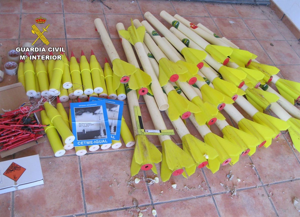 La Guardia Civil de la Región de Murcia se ha incautado y ha neutralizado 26 cohetes granífugos hallados en una vivienda ubicada en el paraje Las Ramblillas, del término municipal de Alhama de Murcia, según informaron fuentes de la Benemérita en un comunicado.