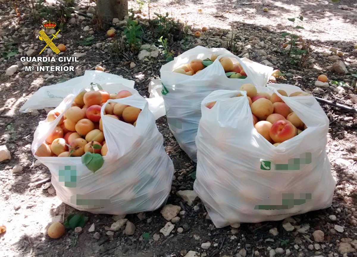 La Guardia Civil de la Región de Murcia, en el marco del 'Plan contra las sustracciones en explotaciones agrícolas y ganaderas', ha desarrollado una investigación dirigida al esclarecimiento del robo de fruta en fincas agrícolas de la Región, que se ha saldado con la detención de nueves personas, una de ellas menor de edad, como presuntas autoras de los delitos de robo con fuerza, hurto y daños. Se ha recuperado una tonelada y media de albaricoques que han sido devueltos a su legítimo propietario.