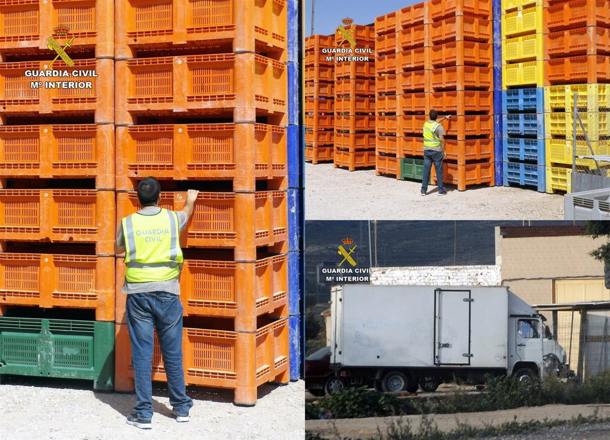 La Guardia Civil de la Región de Murcia, en el marco de la denominada operación 'TRADEBOX', ha desarticulado un grupo delictivo, integrado por cuatro personas y radicado en Alicante, dedicado a la sustracción y posterior comercialización ilícita de envases de plástico utilizados para almacenar y transportar productos del campo (palots).