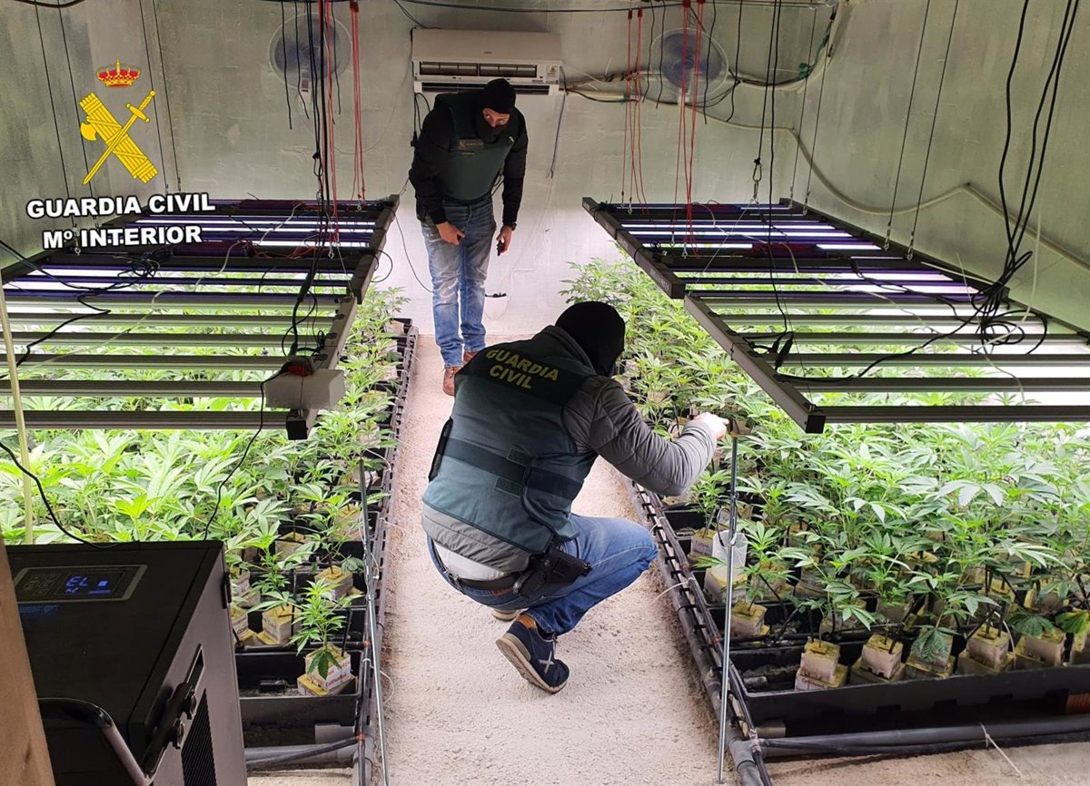 Además de toda la logística empleada para la actividad ilícita ahora esclarecida, los investigadores de la Benemérita se incautaron de más de medio millar de plantas de marihuana y 20 kilogramos de cogollos de esta sustancia envasados y dispuestos para su inminente distribución.