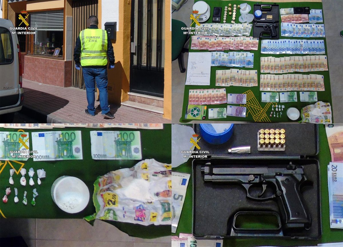 La Guardia Civil de la Región de Murcia ha desarrollado la operación 'TAHONA', establecida para prevenir y perseguir el tráfico de drogas, que se ha saldado con la desarticulación de un punto de venta de drogas ubicado en un comercio de la localidad. Los investigadores han detenido al regente del negocio y le han incautado más de una treintena de dosis de cocaína, sustancia de corte para adulterarla, útiles empleados para su manipulación como balanzas de precisión y envoltorios, así como gran cantidad de dinero y una pistola detonadora.