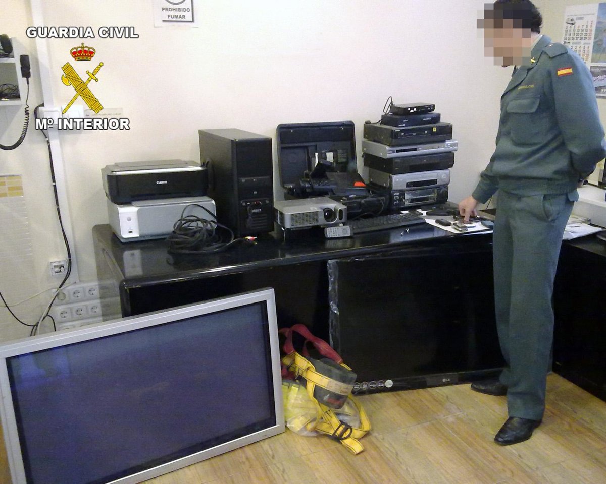 En el marco de esta investigación se ha practicado la entrada y registro en un inmueble donde se han incautado dos televisores, dos cámaras de video, cinco video reproductores, un proyector, un equipo informático, dos impresoras y cinco terminales de telefonía móvil.