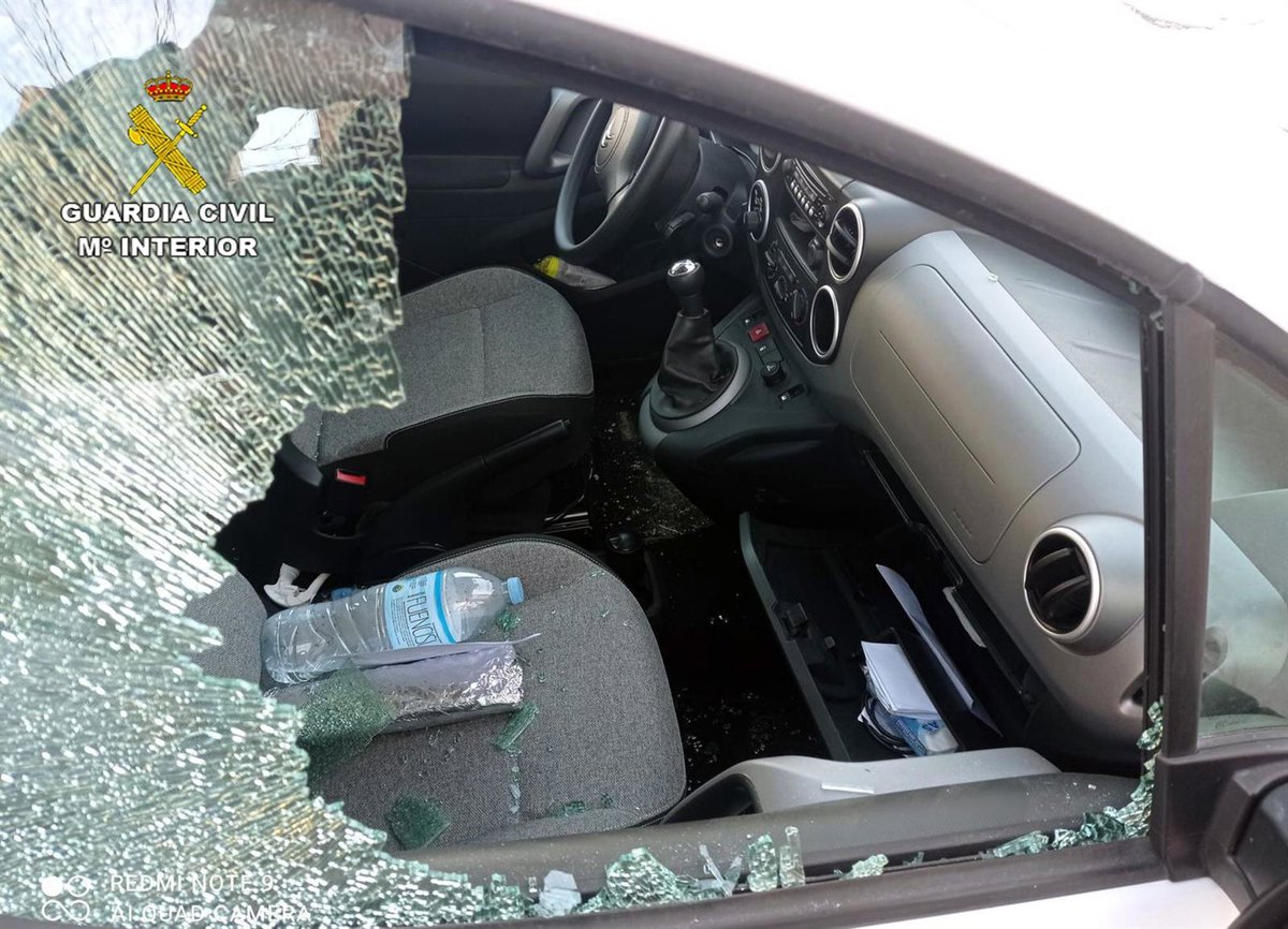 Imagen del estado en el que quedó uno de los coches asaltados - GUARDIA CIVIL