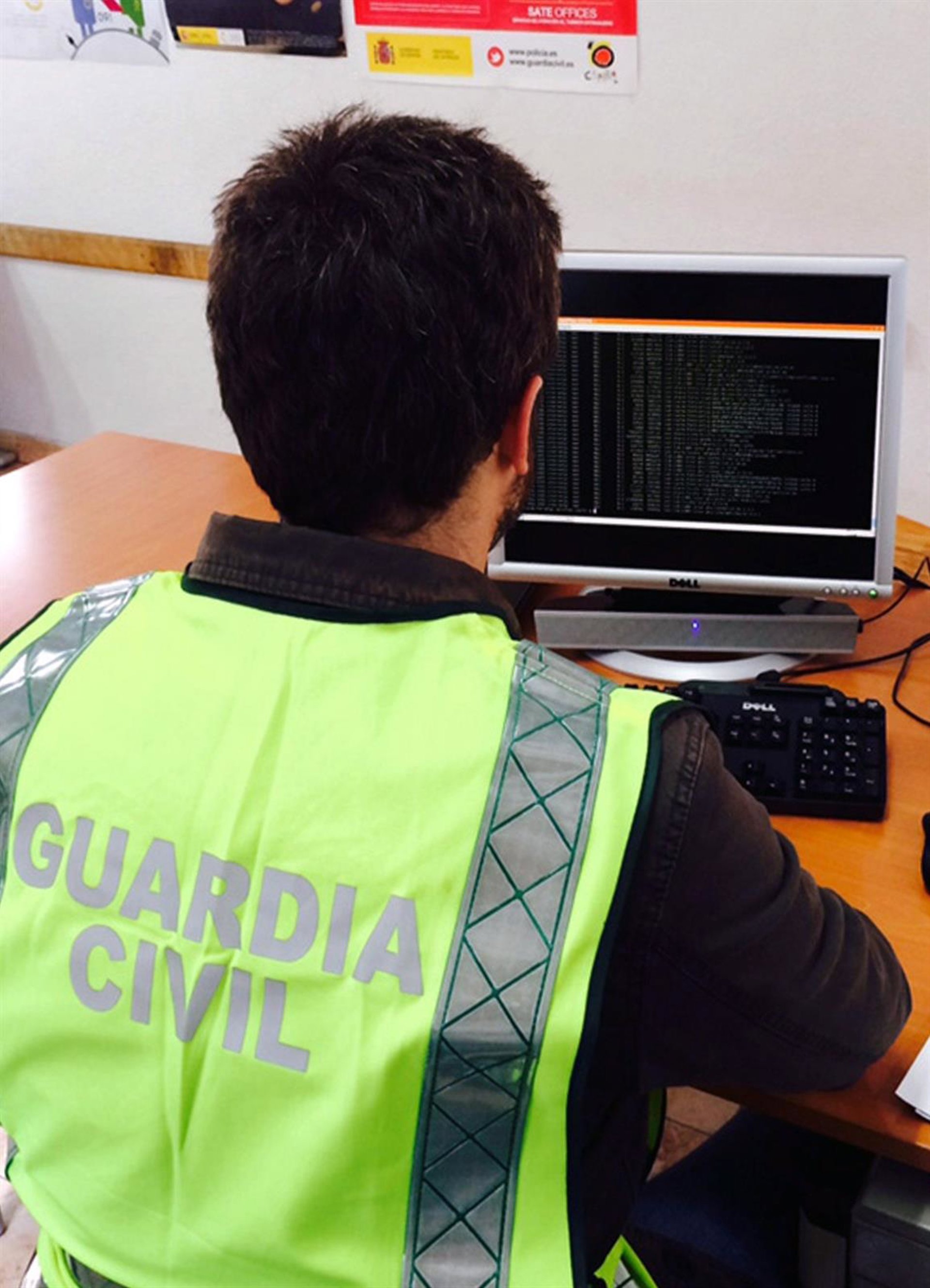 Se adjunta fotografía de un guardia civil analizando información obtenida durante la investigación.