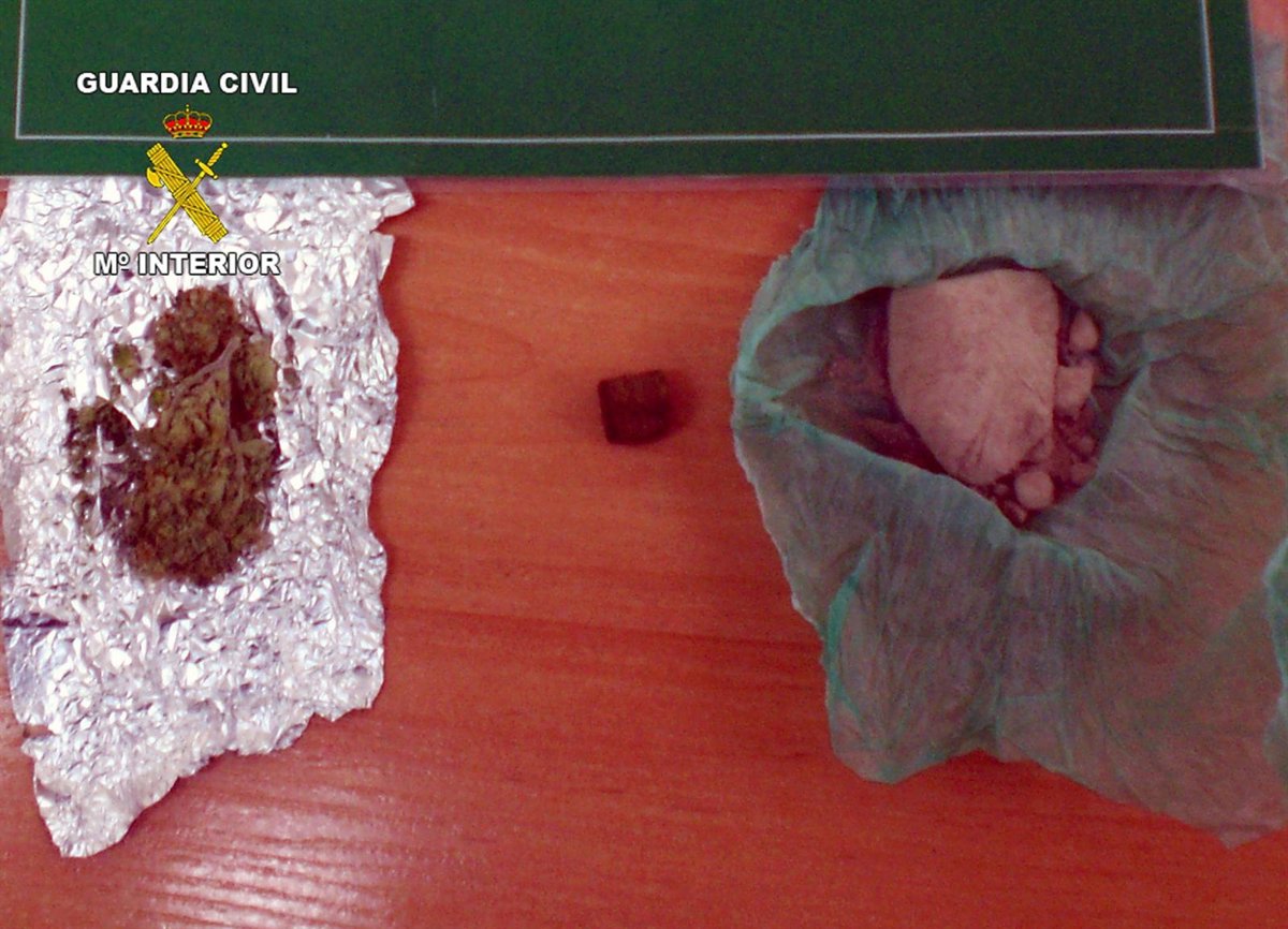 La Guardia Civil de la Región de Murcia ha detenido a una persona, identificada como J.C.E., español, de 33 años, al ser sorprendido mientras transportaba en un vehículo distintos tipos de droga en las inmediaciones de Águilas.