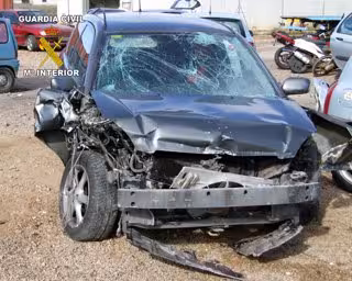 El vehículo supuestamente sustraído fue localizado en un cruce de caminos del trasvase en Lobosillo-Murcia accidentado, en estado gravemente dañado además de haber causado fuertes daños en una arqueta de grandes dimensiones y en una valla-cercado.