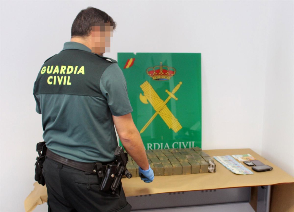 La Guardia Civil de la Región de Murcia ha detenido al conductor de un vehículo, cuando circulaba por la autovía A-91, término municipal de Lorca, con 34 kilos de hachís. Se le atribuye la presunta autoría de delito de tráfico de droga.