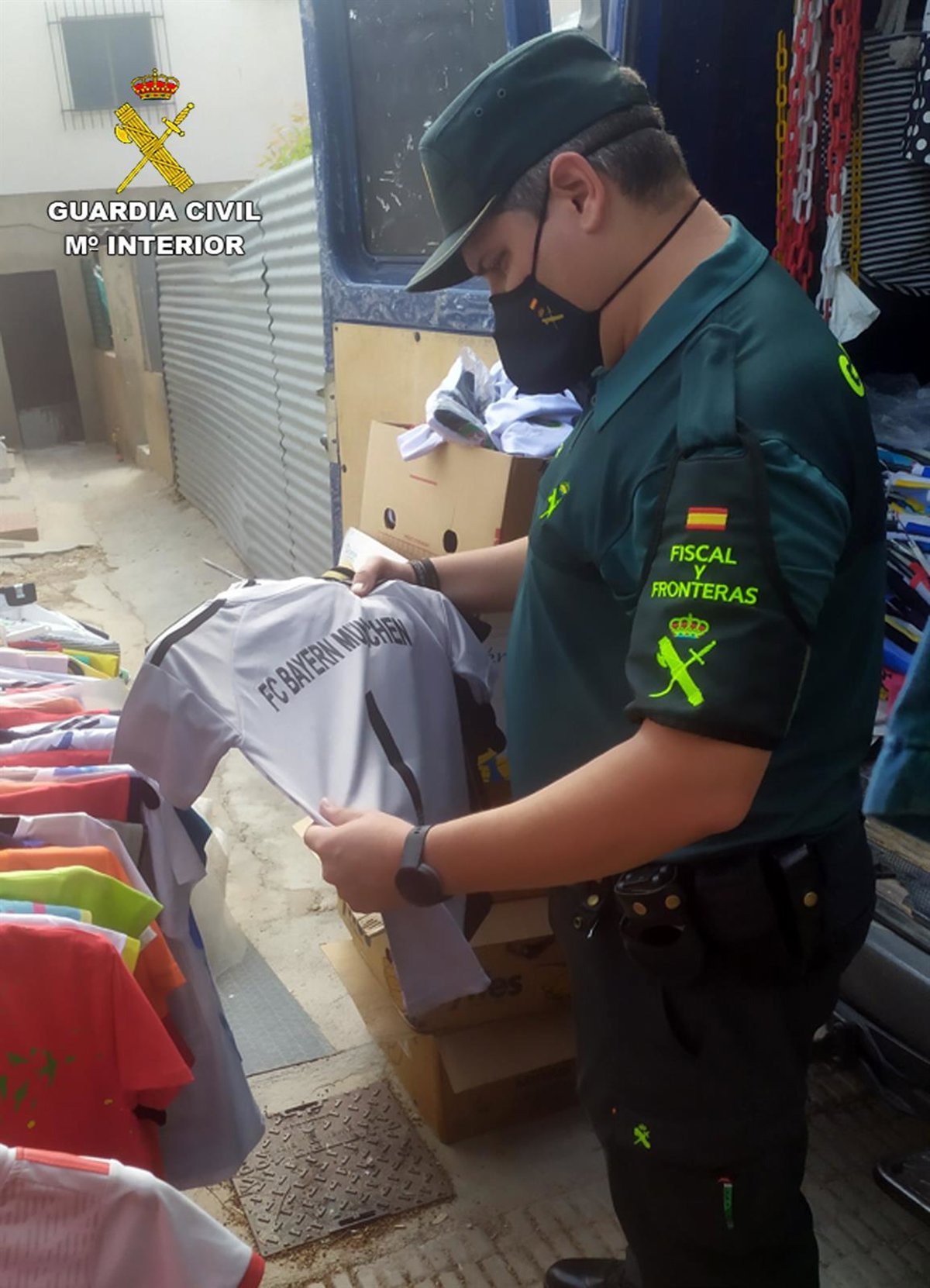 Un agente observa una de las camisetas intervenidas - GUARDIA CIVIL
