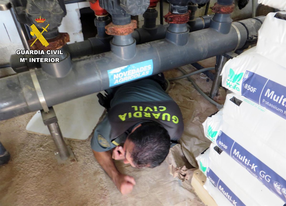 Efectivos del SEPRONA abrieron la operación el pasado septiembre al tener sospechas sobre la sustracción ilícita de agua del subsuelo en una explotación agrícola del municipio. Tras ubicar la finca, los guardias civiles llevaron a cabo la correspondiente inspección y hallaron una obra anexa a una nave utilizada como almacén que llamó su atención.