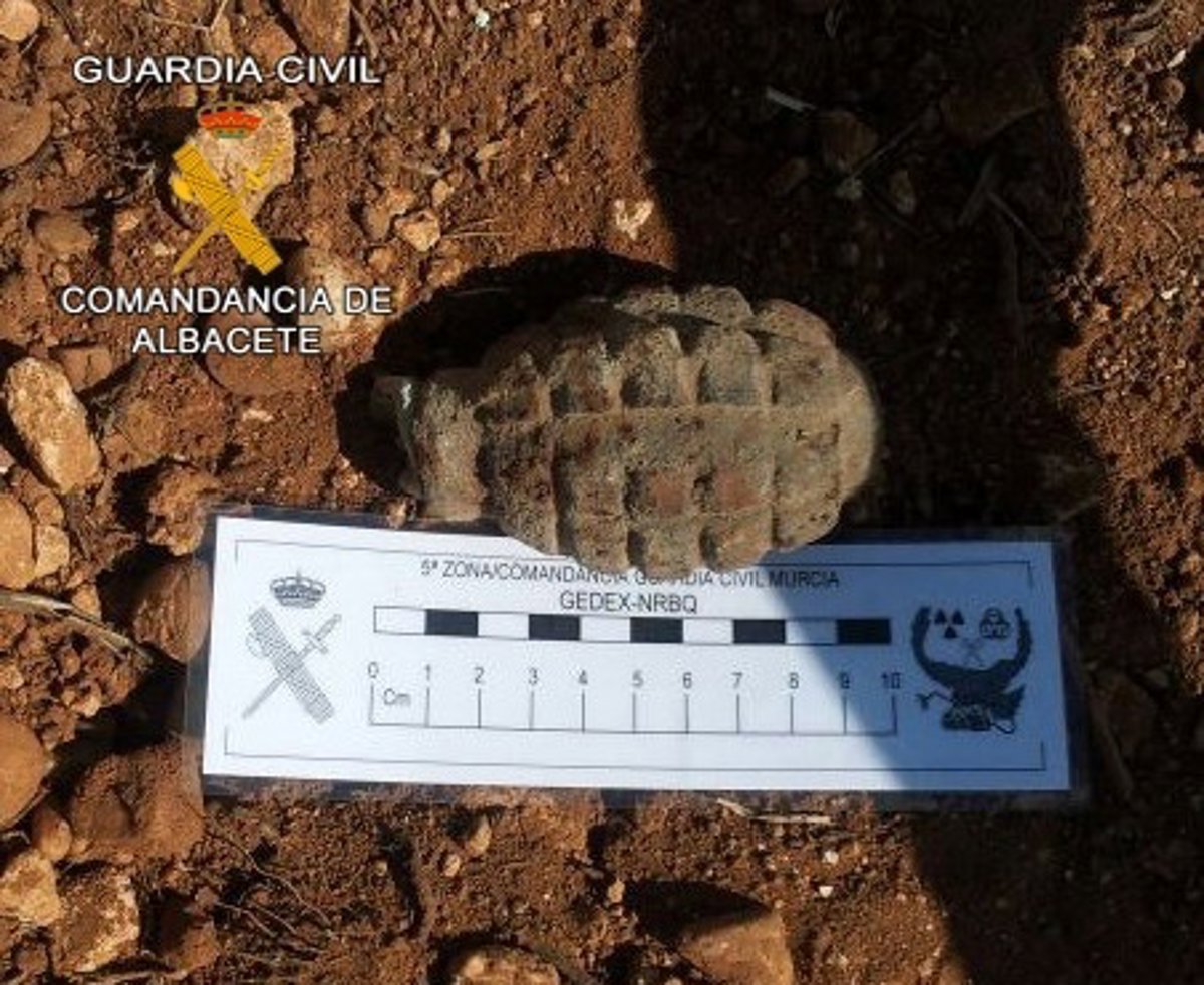 La Guardia Civil ha desactivado una granada de mano, de las denominadas "piña", de la pasada guerra civil española, en avanzado estado de deterioro y oxidación, localizada por un particular en el paraje conocido como 'La Glorieta' del término municipal de Villarrobledo (Albacete).