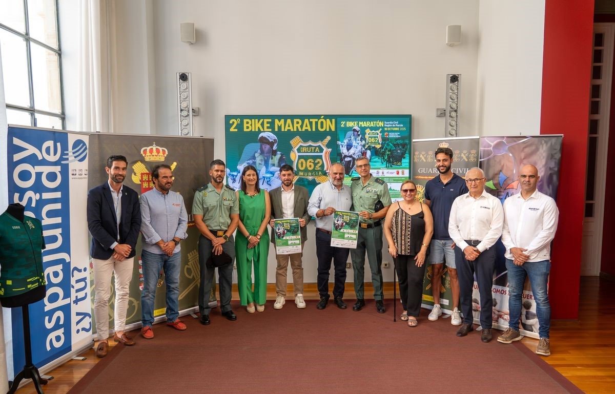La Guardia Civil, con la colaboración de los Ayuntamientos de Cartagena y La Unión, ha presentado este jueves la II Bike Maratón Ruta 062, una carrera solidaria de bicicleta de montaña que tendrá lugar en Cartagena el próximo 19 de octubre y cuya recaudación se destinará a las asociaciones Aspajunide y de Esclerosis Múltiple Asociación de Cartagena y Comarca (EMACC).