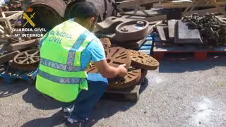 Una de estas visitas a las chatarrerías dio sus frutos cuando los guardias civiles detectaron la comercialización de piezas metálicas procedentes de las instalaciones de la Sierra Minera, por lo que las pesquisas se orientaron a identificar a las personas que las habían entregado.