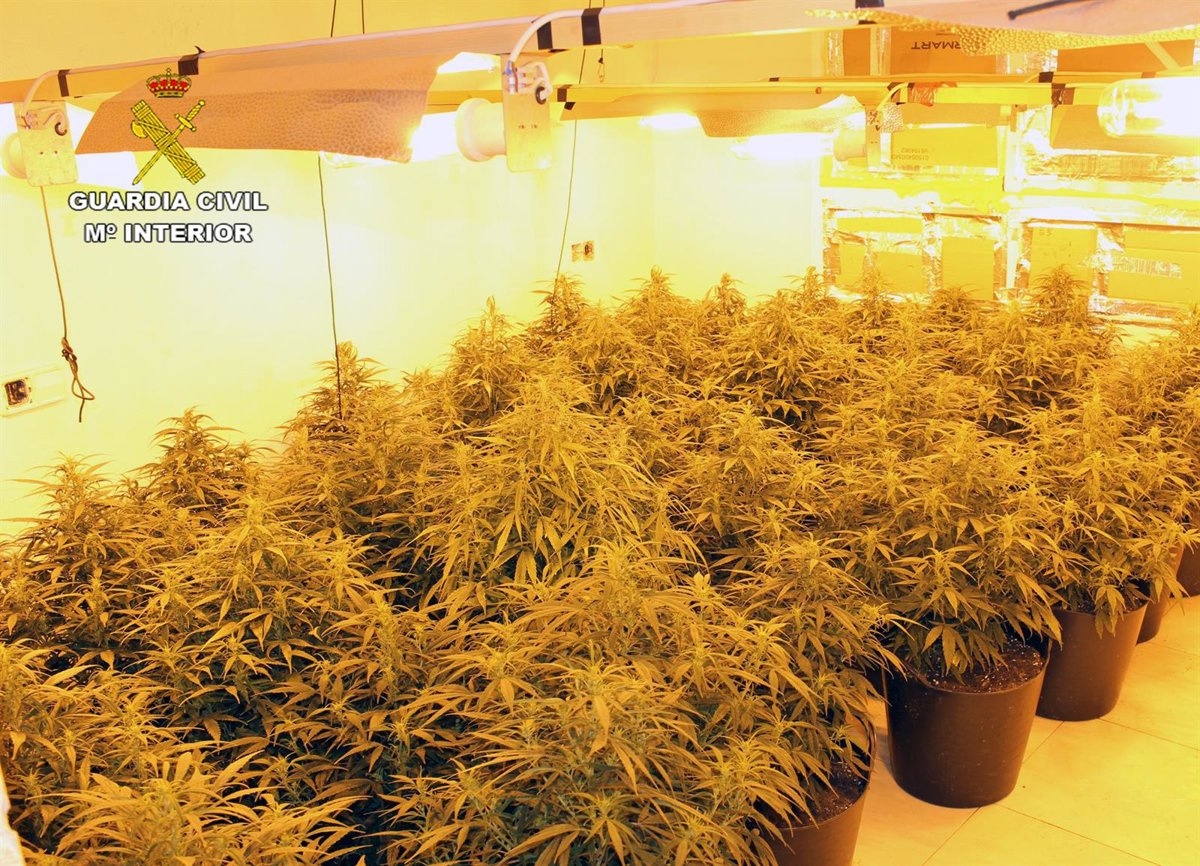 El registro concluyó con el hallazgo de una plantación de marihuana con 265 plantas de cannabis sativa, además de 44 focos halógenos, cinco aparatos de aire acondicionado y los útiles necesarios para el cultivo interior de las plantas, además de un ciclomotor robado.