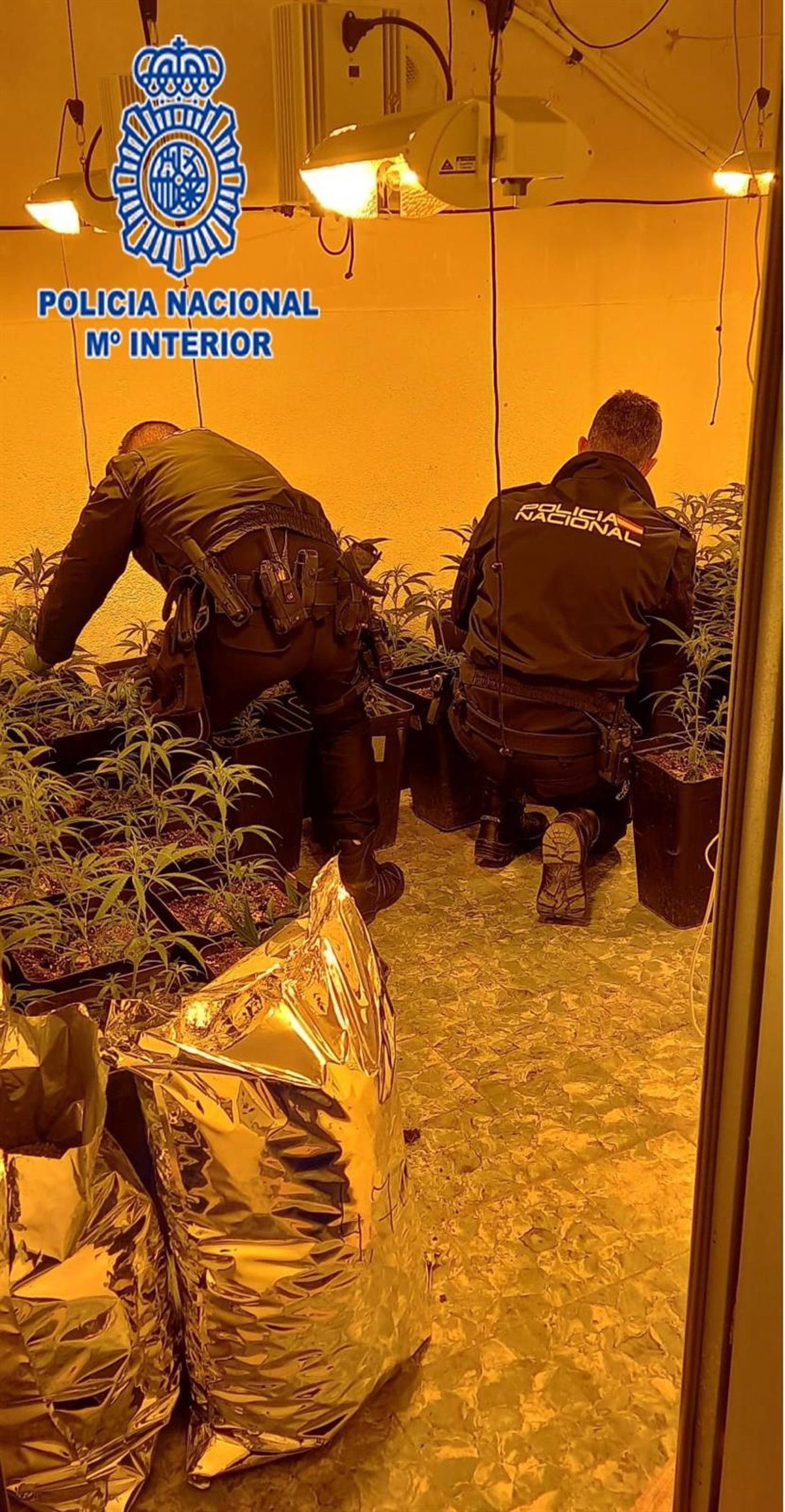 Allí encontraron una plantación de marihuana compuesta por más de 60 plantas, así como 30 kilos de cogollos de marihuana en sacos perfectamente preparados para su distribución.