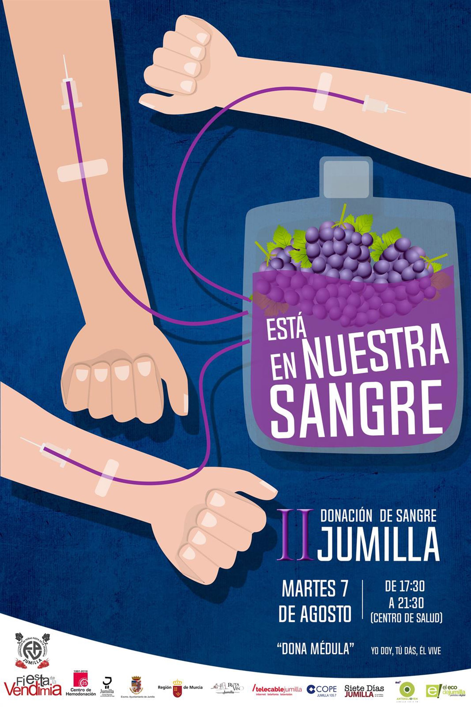 Este año, la campaña se realizará el martes, 7 de agosto, de 17.30 a 21.30 horas, en el centro de salud de Jumilla. El año pasado, en la I edición se atendieron a 329 donantes en una sola tarde, con 54 nuevos donantes y 70 donantes de médula.