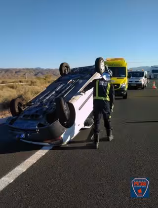 El suceso ha ocurrido poco después de las 8.00 horas, en el kilómetro 11,700 de la A-33 sentido Murcia, cuando un vehículo con varias personas en su interior ha volcado, por causas que se desconocen.