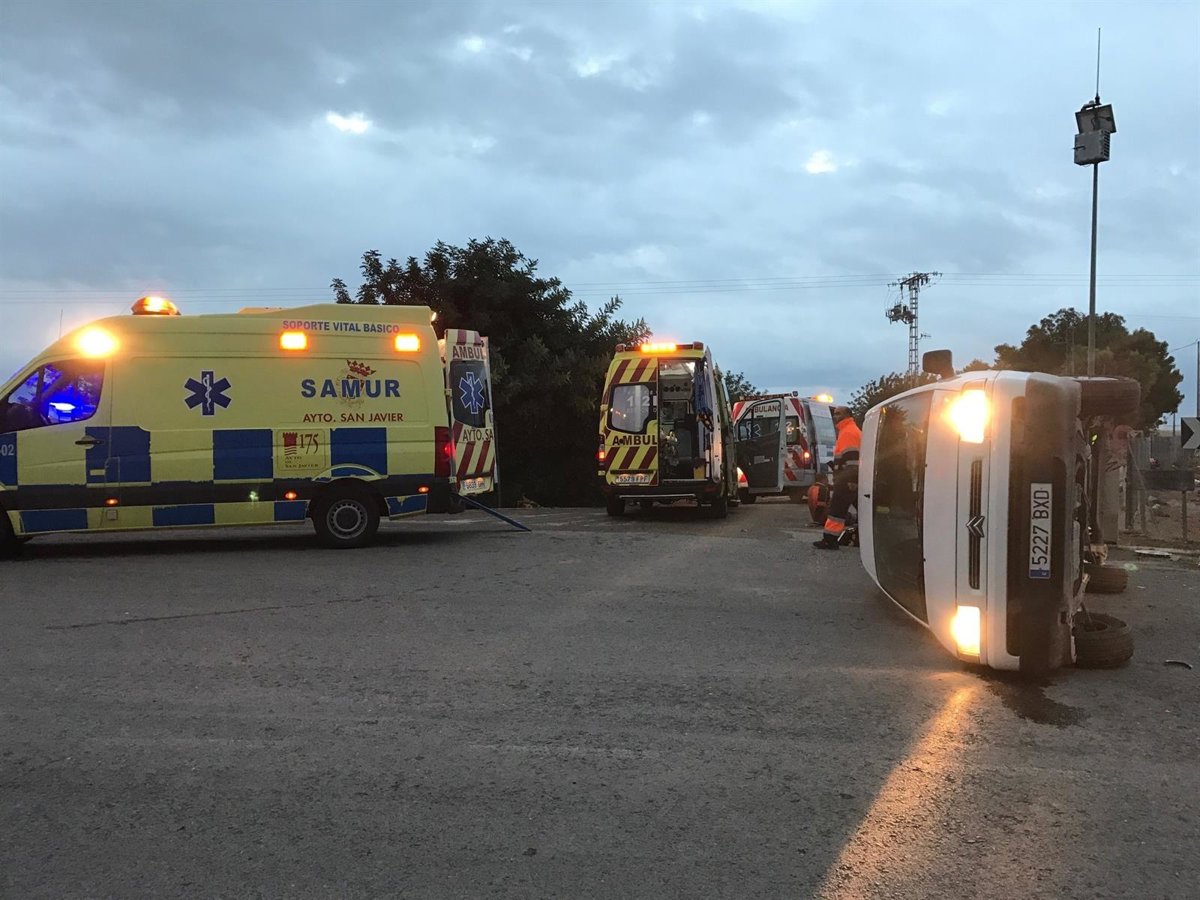 El 1-1-2 recibía, a las 7.41 horas, llamadas informando del accidente e indicando que la furgoneta había volcado. Al lugar llegó inmediatamente una patrulla de la Policía Local de San Javier, la cual informó que de las nueve personas que viajaban en la furgoneta y cuatro en el turismo, al menos siete necesitaban asistencia sanitaria.