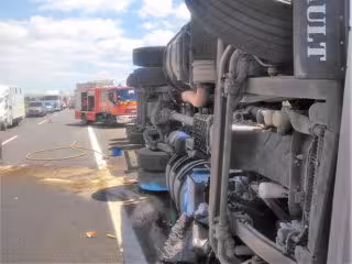 Servicios de emergencias han atendido al conductor de un camión, que ha resultado herido al volcar el vehículo que conducía en la autovía A-7, a la altura del kilómetro 614, cerca de la salida Totana sur (Murcia).