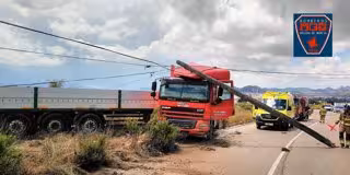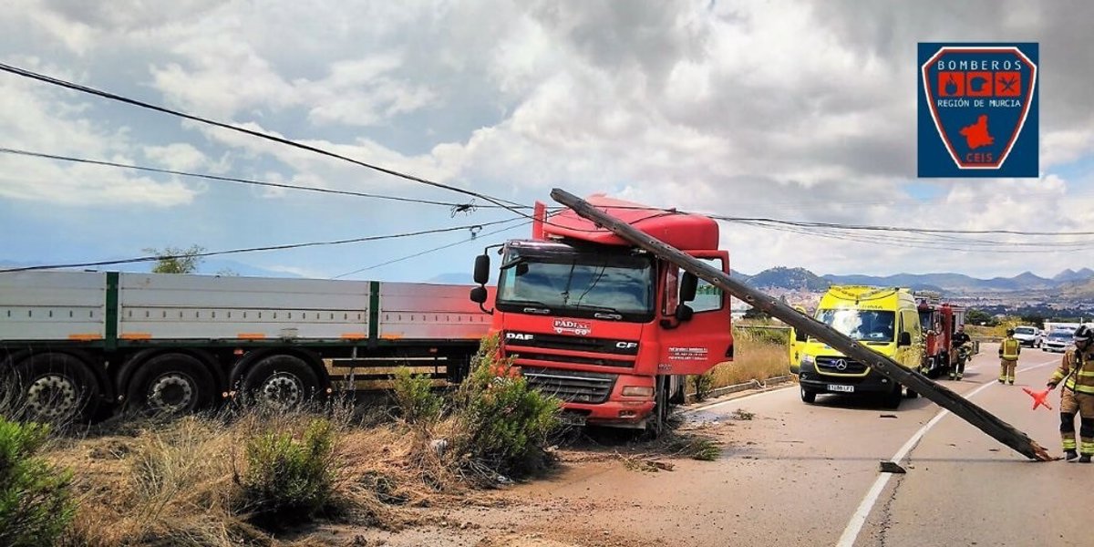 Un hombre ha tenido que ser atendido y trasladado al hospital herido al chocar el camión que conducía contra un poste en la carretera N-344, en el municipio de Yecla.